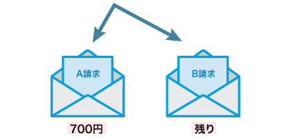 - 「A請求書に700円」、「残りをB請求書」に分割する設定に変更します。