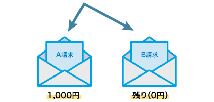- <例> 電話機使用料1,000円のうち上限の1,000円をA請求に、残り(結果的に0円)をB請求に分割している場合