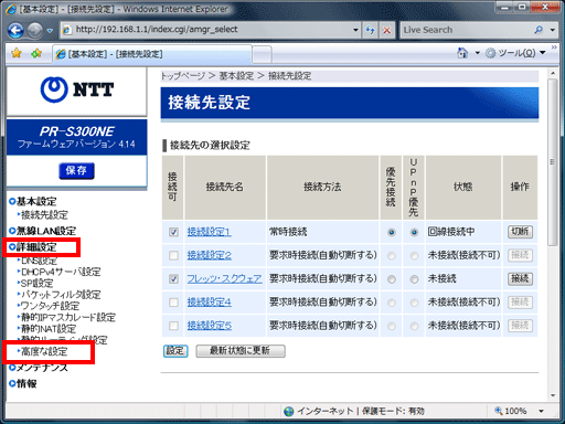 メニューの【詳細設定】をクリックし、【高度な設定】をクリックしてください。