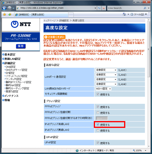 IPv6通信させるためのルーター設定方法:PR-S300NE