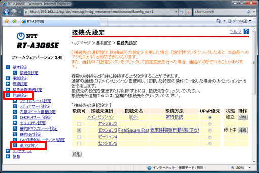 メニューの【詳細設定】をクリックし、【高度な設定】をクリックしてください。