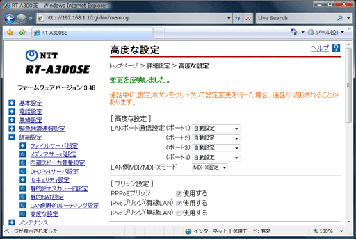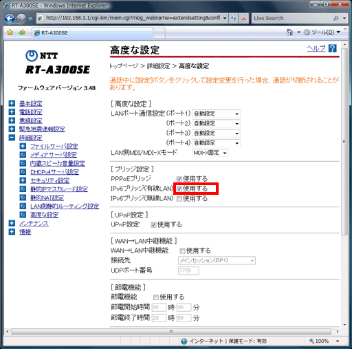 IPv6通信させるためのルーター設定方法:RT-A300SE