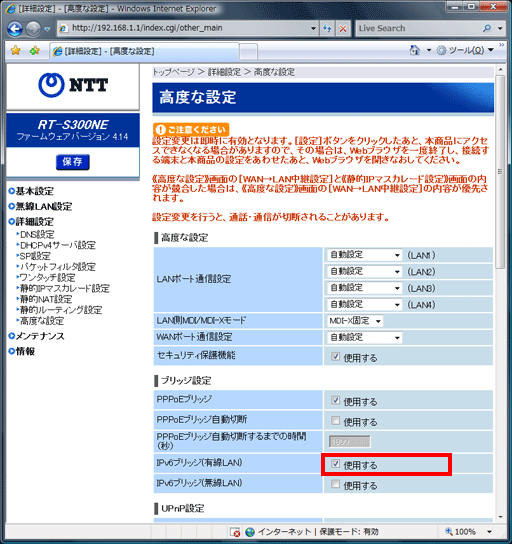 IPv6通信させるためのルーター設定方法:RT-S300NE