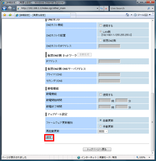 画面を下にスクロールし、最下部の【設定】ボタンをクリックしてください。