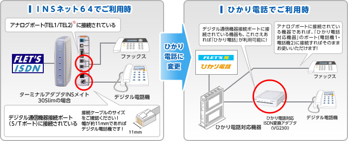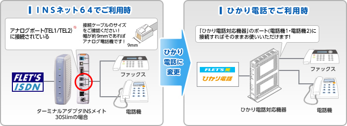 INSネット64でご利用中の電話機やFAXなどをひかり電話でもご利用いただく方法