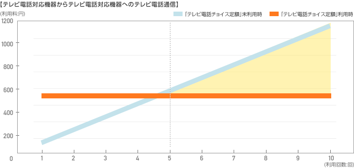 「テレビ電話チョイス定額」未利用時 | 110円 | 220円 | 330円 | 440円 | 550円 | 660円 | 770円 | 880円 | 990円 | 1,100円 |