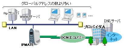 - インターネットプロバイダ指定のグローバルアドレスの割当て