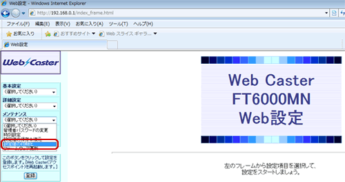 - WWWブラウザを起動し、アドレス入力欄にhttp://192.168.0.1/を入力します。