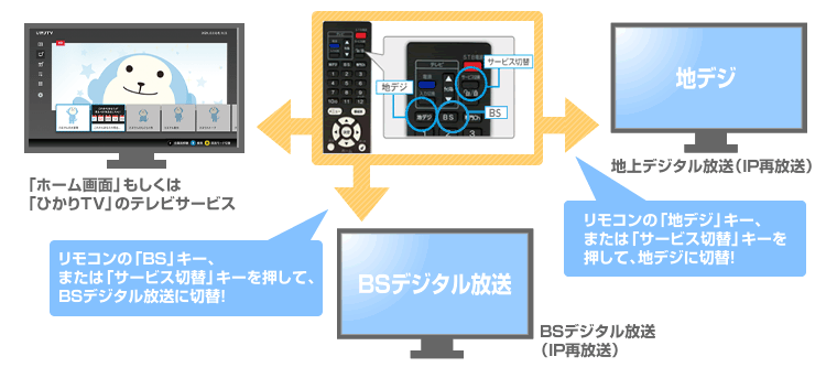 ひかりTVのご契約があれば、3つのプランで地上/BSデジタル放送の視聴が可能です。