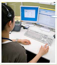 ![]() ![]() 的確なアドバイスのためには、きちんとしたヒアリングが重要。お客さまからよく寄せられる質問と対応手順はサーバの中に収められており、パソコン画面で検索して目の前に表示することもできます。