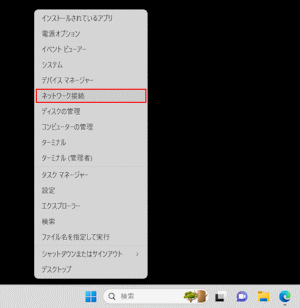 デスクトップ画面から、キーボードの[Windows ロゴ]キーと[X]キーを同時に押します。表示されるメニューから『ネットワーク接続』を選択します。
