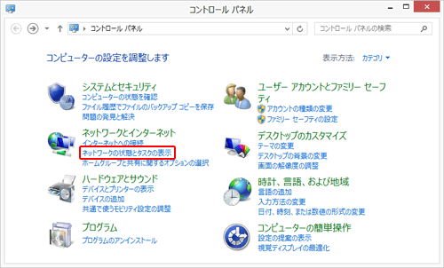 「ネットワークとインターネット」の項目内の『ネットワークの状態とタスク表示』を選択します。