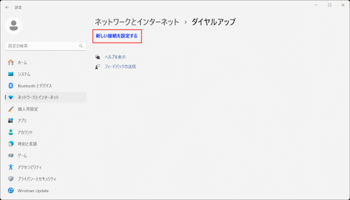 Windows 11では『新しい接続を設定する』を選択、Windows 10/8.1/7/Vista では「ネットワークと共有センター」画面で選択します。