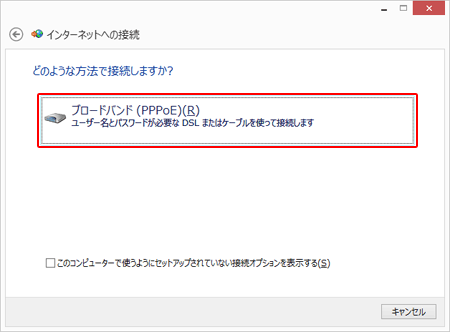 『ブロードバンド(PPPoE)』を選択します。