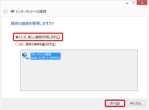 『いいえ、新しい接続を作成します』にチェックを入れ、『次へ』を選択します。