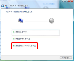 『スキップ』を選択する前にこの画面が表示された場合には、『接続をセットアップします』を選択します。