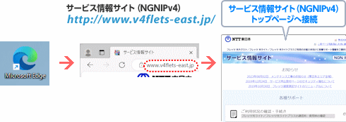 ブラウザを起動して、アドレス入力欄にサービス情報サイト(NGN IPv4)のURLを入力します。