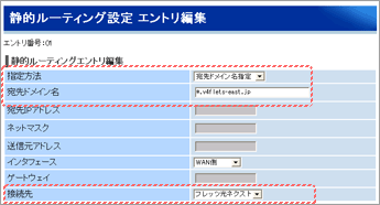 ドメインルーティングの各項目について、以下の内容を設定します。