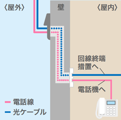 電話線の配管を利用して光ケーブルを、お客さま宅内に引き込めるかを確認します。