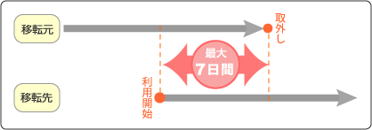 お早めにお申し込みいただきますと、お客さまのご都合の良い日をご指定いただけます。 - 7日以内なら新居(移転先)と現在のお住まい(移転元)の両方で電話をご利用いただけます。お申し込みの際にお申し付け下さい。
