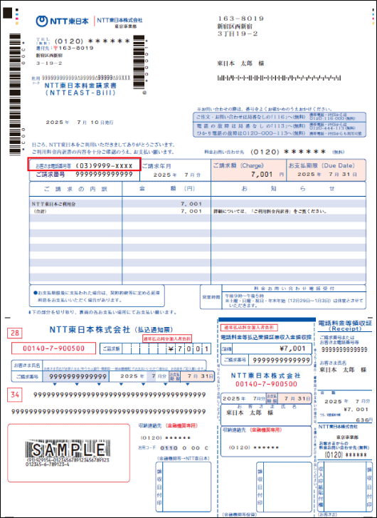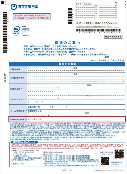 「お客さま電話番号等」「請求書 お客様番号」に記載された「お客様番号」が(00)1234-5678の場合