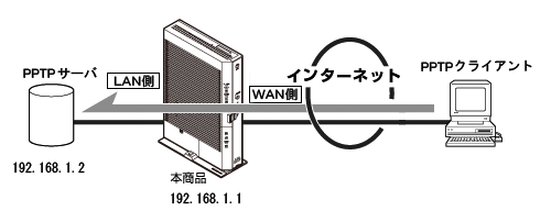 本商品に接続したPPTPクライアントからPPTPサーバに接続する