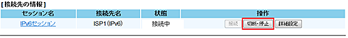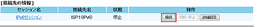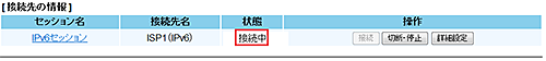 設定された接続先について「基本設定」-「接続先設定(IPv6 PPPoE)」で接続/切断できます。