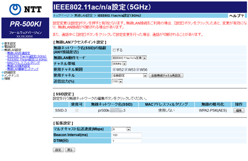 IEEE802.11ac/n/a設定(5GHz)