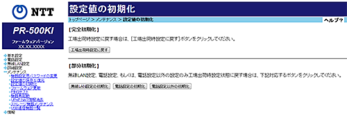 - 本商品を完全初期化すると、ひかり電話に関する設定もすべて消去されます。