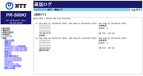 ログに記録する日時の情報はひかり電話から自動的に取得します。
