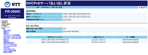 DHCPv6サーバ払い出し状況