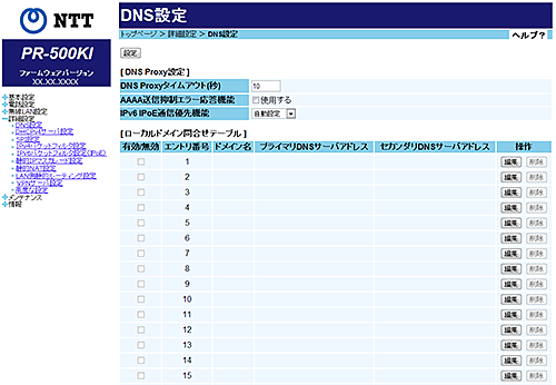 IPv4 PPPoE側へのAAAA問合せが発生した場合に、proxyせずに送信元端末に空の応答を返答する機能です。本機能を使用する場合はチェックします。