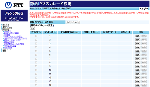 [静的IPマスカレード設定]