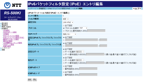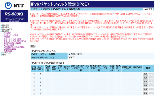 IPv6パケットフィルタ設定 (IPoE)