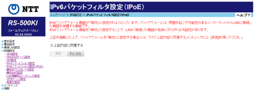 IPv6ファイアウォール機能を無効にしたときの確認画面です。
