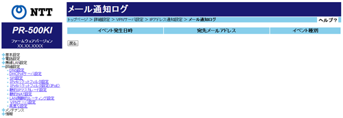 メール通知ログは以下の項目を表示します。(最大30件)