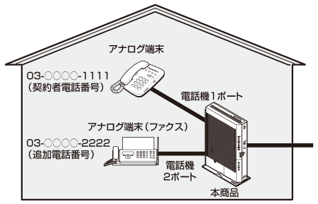 本商品にアナログ端末を接続するには次の手順で設定します。