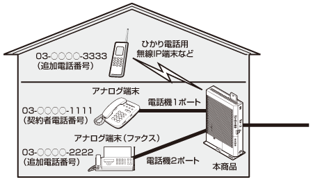 ※本商品にIP端末(音声)を接続するには、ひかり電話に対応した無線IP端末などのIP端末(音声)が必要です。