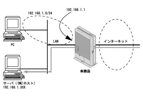 その場合に簡易DMZ側パソコンが被害を受けた場合は、それらのプロトコルを使って簡易DMZ外のLAN側パソコンに被害が及ぶ可能性が高くなります。 - 簡易DMZ機能は、利用しても完全に被害をなくすことができることを保証するものではありません。