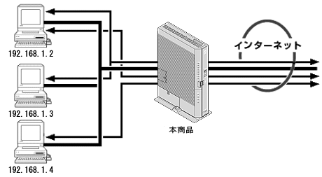 LAN側からWAN側へのパケットのうち、上記の「接続ルール設定」で設定した条件と一致するパケットおよびその応答パケットは、その条件の一致したセッションのアカウントを使って接続します。