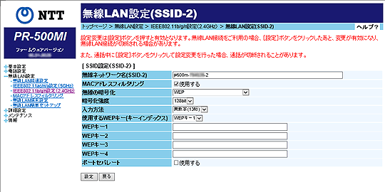 ※ WEPキーは、たやすく推測されないような文字列で設定してください。