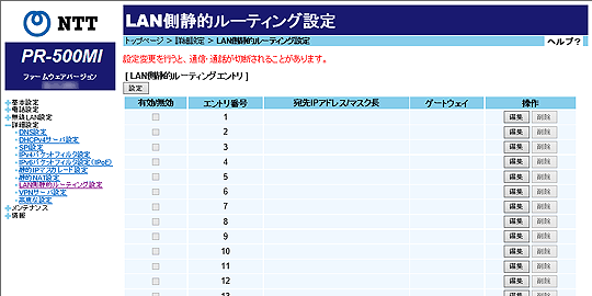 [LAN側静的ルーティングエントリ]