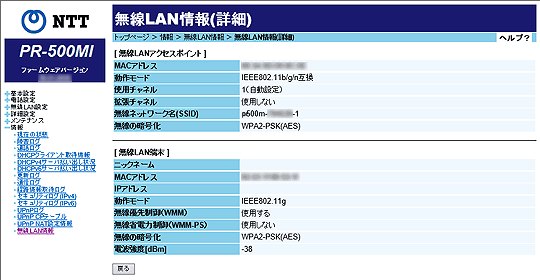 無線LANに関する情報を表示します。