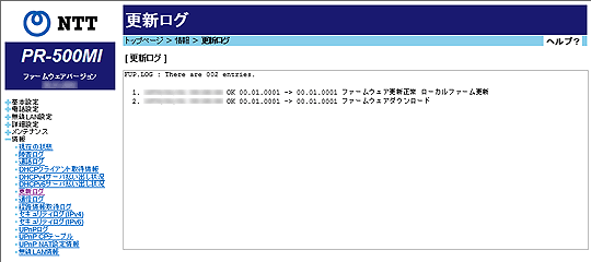 本商品で実施されたファームウェア更新のログが表示されます。