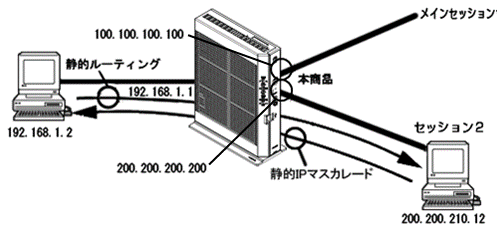 上記のような設定を行った場合には、『200.200.22.0/24』のネットワークに属する端末からは、本商品内のWeb サーバ(LAN側、IPアドレスは『192.168.1.2』と直接通信することが可能です。