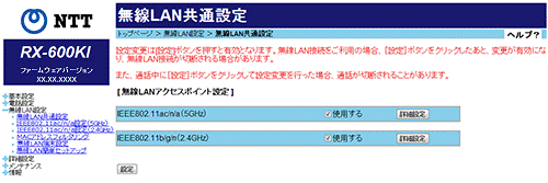 設定変更は即時に有効となります。無線LAN端末から設定を行っている場合には、[設定]をクリックしたあと、変更が有効になり、無線LAN接続が切断される場合があります。