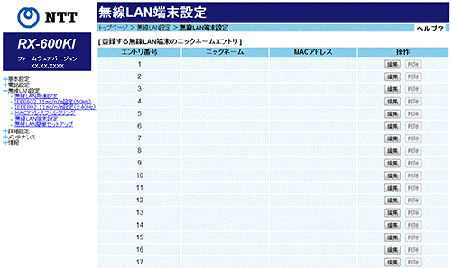 - 無線LAN端末設定のエントリテーブル数は32個です。SSID-1、SSID-2、SSID-3で共通のものを使用します。