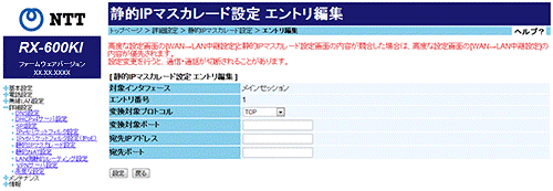 [静的IPマスカレード設定 エントリ編集]