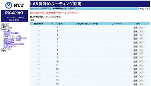 LAN内に他のルータが存在し、そのルータに接続されたパソコンから本商品を経由したインターネット通信を行う場合などに、あらかじめルーティングテーブルにルーティング情報の設定を行います。