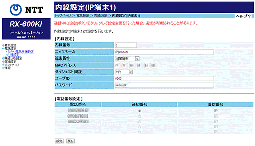 内線設定(IP端末)